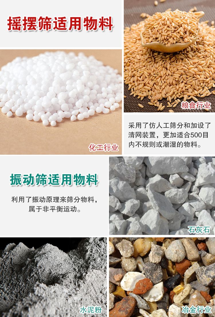 搖擺篩由于采用了仿人工篩分和加設了清網裝置,所以更加適合500目內不規(guī)則或潮濕的物料,克服了普通振動篩的堵網風險,而振動篩屬于非平衡破壞暴力運動,利用了振動原理來篩分物料,所以有時還會破壞物料,所以對于一些顆粒狀結晶焦脆物料,建議使用搖擺篩,其篩分精度可達95% 以上。