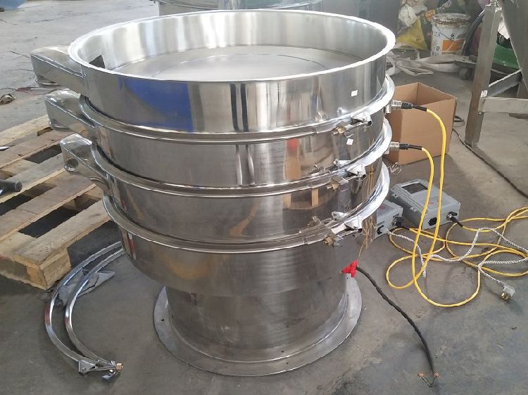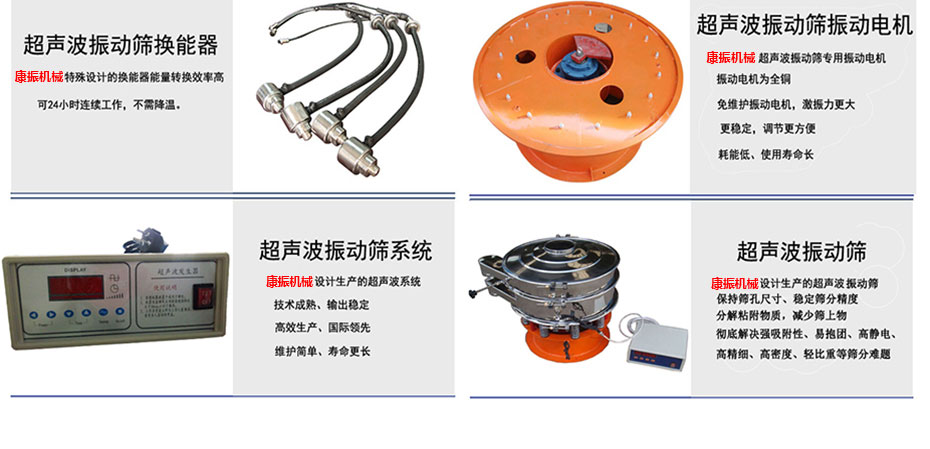 超聲波振動篩是將220V、50Hz或110V、60Hz電能轉(zhuǎn)化為36KHz的高頻電能,輸入超聲換能器,將其變成36KHz機(jī)械振動,產(chǎn)生的功率超聲波使篩網(wǎng)作高頻振動。篩網(wǎng)上的物料在作低頻旋振運(yùn)動的同時,疊加上超聲振動,既可防止網(wǎng)孔堵塞,又可使篩分機(jī)提高產(chǎn)量和質(zhì)量,從而達(dá)到快速篩分和清網(wǎng)的目的,使超微細(xì)粉篩分成為易事。該系統(tǒng)在傳統(tǒng)的振動篩基礎(chǔ)上在篩網(wǎng)上引入一個低振幅、高頻率的超聲振動波(機(jī)械波),以改變超微細(xì)分體的篩分性能。特別適合高附加值精細(xì)分體的用戶使用。