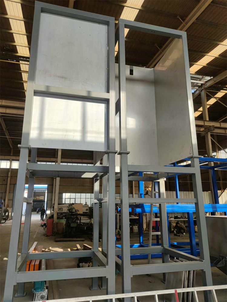 結(jié)構(gòu):噸袋卸料投料站用于噸袋裝粉狀、顆粒狀物料拆包卸料作業(yè)。該設(shè)備由機架、提升裝置、隔膜閥、暫存料倉等組成;根據(jù)工藝特點和設(shè)備尺寸,可以采用吊機和叉車兩種不同的方式; 可配有雙軌道,用于兩只電動葫蘆安裝的場合中,提高拆袋效率;材質(zhì)分為碳鋼和不銹鋼兩種;整套設(shè)備密封性好,操作簡便,極大的提高了生產(chǎn)環(huán)境和生產(chǎn)效率。