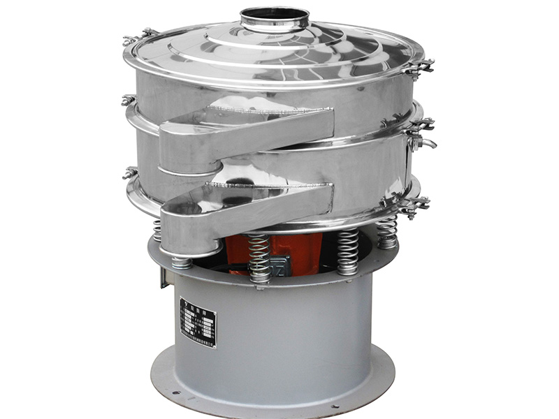 旋振篩是一種高精度細(xì)粉篩分機(jī)械,其噪音低、效率高,快速換網(wǎng)只需3-5分鐘,全封閉結(jié)構(gòu),適用于粒、粉、粘液等物料的篩分過濾。旋振篩是由直立式振動(dòng)電機(jī)作激振源,電機(jī)上、下兩端安裝有偏心重錘,將電機(jī)的旋轉(zhuǎn)運(yùn)動(dòng)轉(zhuǎn)變?yōu)樗?、垂直、傾斜的三次元運(yùn)動(dòng),再把這個(gè)運(yùn)動(dòng)傳遞給篩面。調(diào)節(jié)電機(jī)上、下兩端的相位角,可以改變物料在篩面上的運(yùn)動(dòng)軌跡。