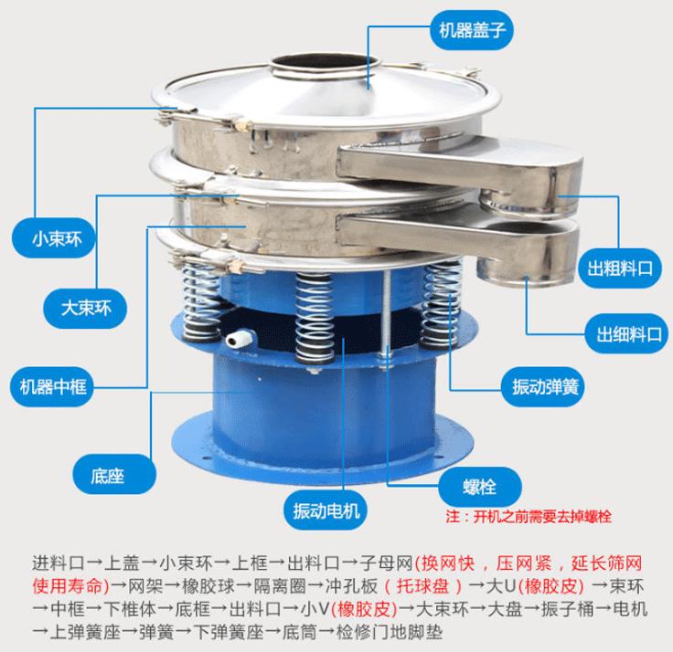 篩選范圍廣--只有系列三次元旋振篩能分選如此廣的原料范圍:任何顆粒、細(xì)粉、漿液都可以篩選。篩分細(xì)500目(28微米),過濾細(xì)5微米。網(wǎng)孔防堵塞--三次元振動(dòng)功能及自動(dòng)清理堵網(wǎng)裝置把堵網(wǎng)幾率降到小。 單層或多層分選--每臺(tái)旋振篩可選一至五層篩網(wǎng),能同時(shí)進(jìn)行二到六個(gè)等級(jí)的分選或過濾。