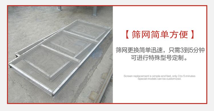 篩網(wǎng):有低碳鋼、黃銅、青銅、不銹鋼絲等數(shù)種篩網(wǎng),具體的材質(zhì)要結(jié)合物料的特性來選擇。