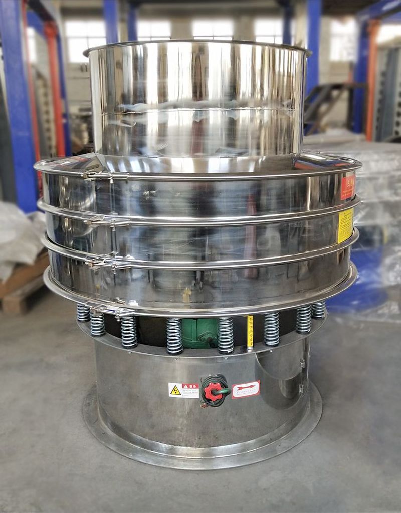 旋振篩是一種高精度細(xì)粉篩分機(jī)械,其噪音低、效率高,快速換網(wǎng)只需3-5分鐘,全封閉結(jié)構(gòu),適用于粒、粉、粘液等物料的篩分過濾。旋振篩是由直立式振動(dòng)電機(jī)作激振源,電機(jī)上、下兩端安裝有偏心重錘,將電機(jī)的旋轉(zhuǎn)運(yùn)動(dòng)轉(zhuǎn)變?yōu)樗?、垂直、傾斜的三次元運(yùn)動(dòng),再把這個(gè)運(yùn)動(dòng)傳遞給篩面。調(diào)節(jié)電機(jī)上、下兩端的相位角,可以改變物料在篩面上的運(yùn)動(dòng)軌跡。