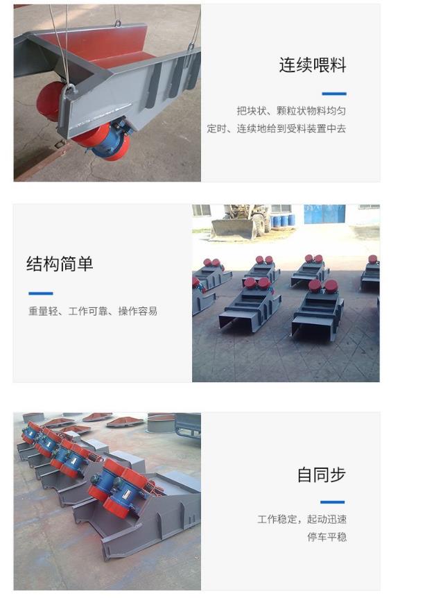 3、該機結構簡單,振動平穩(wěn),喂料均勻,連續(xù)性能好,激振力可調;隨時改變和控制流量,操作方便;偏心塊為激振源,噪音低,耗電少,調節(jié)性能好,無沖料現(xiàn)象;若采用封閉式機身可防止粉塵污染。