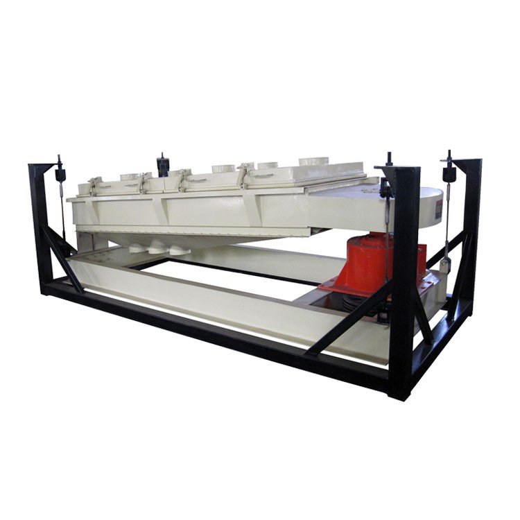 平面篩工作原理傾角為4度的篩體由傳動箱馭動,其運動軌跡在進料端為水平圓運動。在長度方向上逐漸變成橢圓運動。zui后在出料端變成近似往復(fù)直線運動。