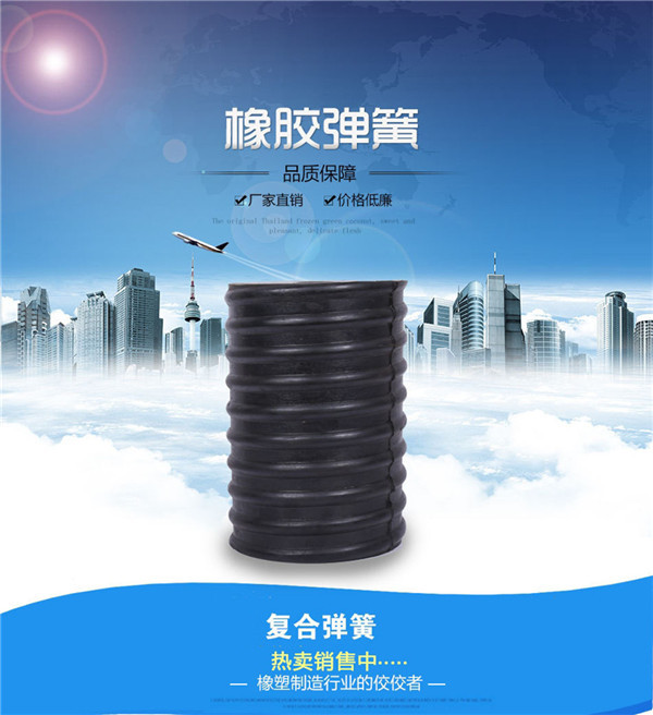 復合彈簧:是由金屬螺旋彈簧和橡膠復合在一起的園筒狀彈性體。該產品優(yōu)于金屬彈簧,具有抗腐蝕性好、壽命長等優(yōu)點,與其它彈簧相比,減振能力強,緩沖效果好。
