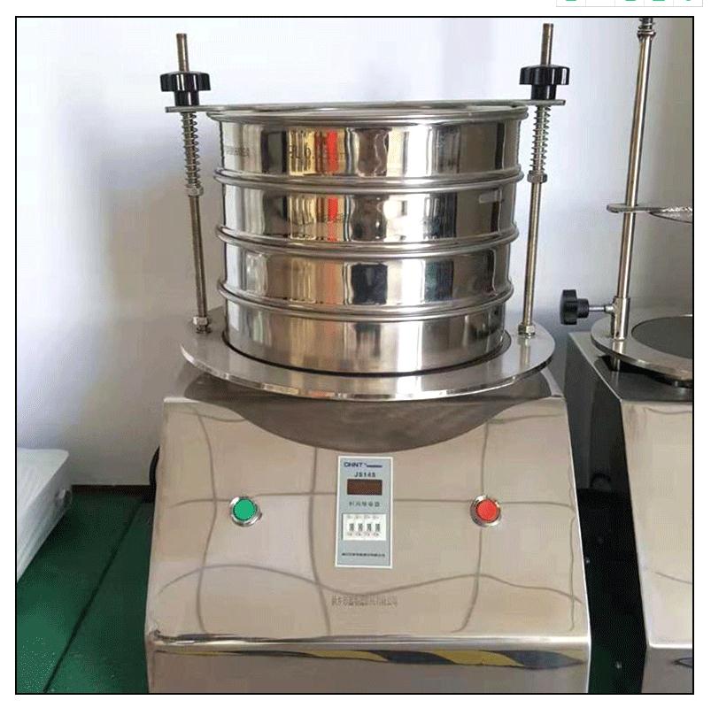 “機械篩分”將篩子按孔徑大小疊在一起,給料放在頂上一層篩子上,并加上蓋和底盤,一般疊5~6個篩子。然后放在機械振篩器上進行機械振動篩分。通常,振動時間為20分鐘。檢測篩分質量時,再用振篩器振篩器振篩5分鐘,如每分鐘篩下量小于0.2%試驗樣量即為合格,對于粗粒物料,過篩率小于1%即可。如篩分過程中損失量超過總篩分量的0.5%時,試驗必須重新取樣進行。為避免損失和延長篩分時間,有時在開始篩分時先用細的篩子將粉塵篩除。